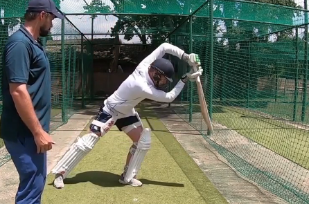 Strive to maintain a “Figure 9” shape as illustrated in the picture above. This ensures ideal body position just before ball contact and fosters muscle memory. Detailed instructions on this type of front foot drive cricket drills can be found on the official YouTube channel of CoachCricXI.