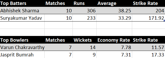 Possible playing Xl: Abhishek Sharma, Sanju Samson (wk), Ishan Kishan, Suryakumar Yadav(c), Rinku Singh, Hardik Pandya, Shivam Dube, Harshit Rana, Varun Chakravarthy, Arshdeep Singh, Jasprit Bumrah